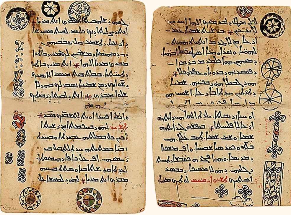L’écriture dont il est question ici fut introduite en Chine par les nestoriens – aussi appelés chrétiens syriaques – venu en Chine à partir du Moyen-Orient par la Route de la soie continentale, possiblement au VIe siècle. Leur religion – appelée jǐngjiào 景教 en chinois – resta marginale. En revanche, leur écriture laissa des traces en donnant naissance à l’alphabet vieil ouïghour qui fut l’une des premières écritures des langues turques.