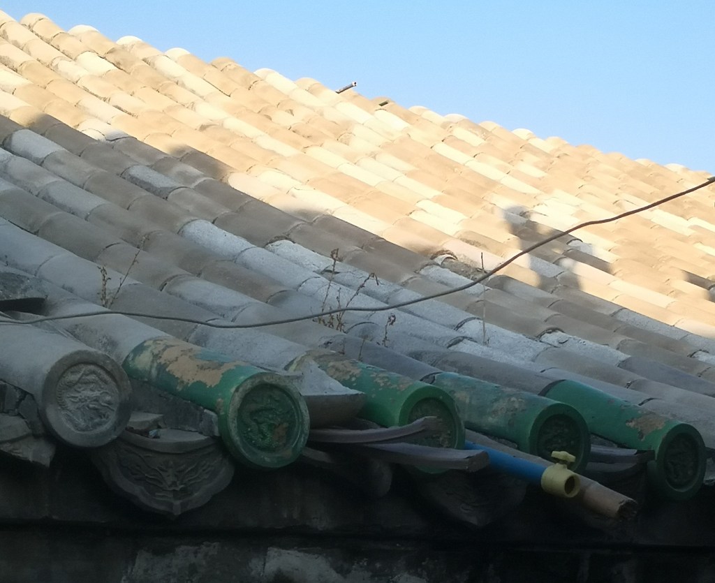 Tuiles vernies du toit d’une cave des anciennes glacières impériales de Xuechi hutong. @Rémi Anicotte (10 janvier 2024)