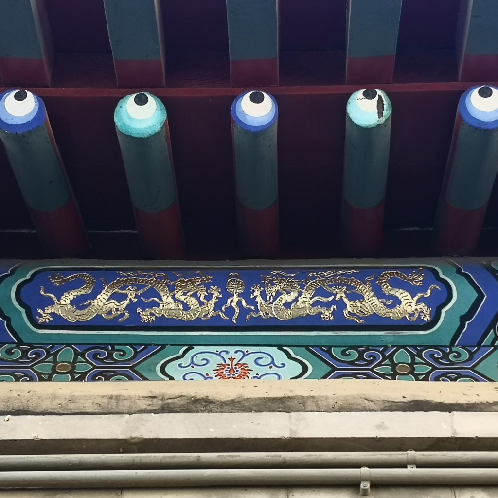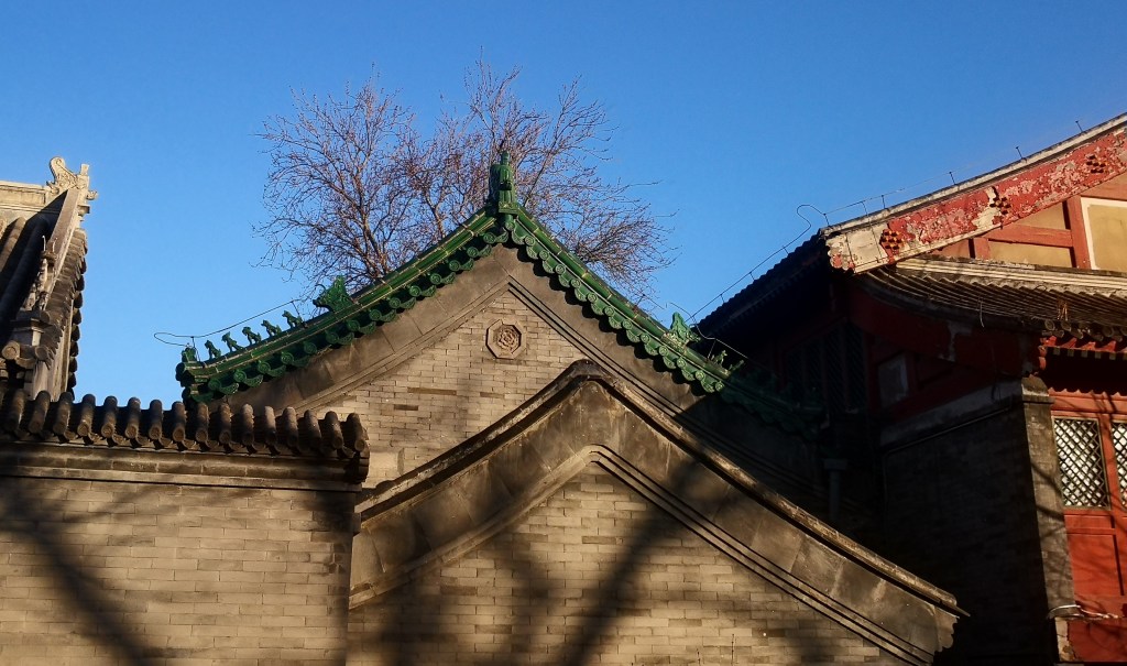 En face, le café Qingyun Xiyue (青云熹玥) s’est installé dans une ancienne demeure du chanteur d’opéra Mei Lanfang (梅兰芳, 1894-1961) qui résida ici de 1916 à 1922. L’habitation s’adossait à un temple consacré à Guan Yu (关羽), le héros du temps des Trois Royaumes promu patron des commerçants et des militaires. Aujourd’hui, la cour accueille des tables ombragées en été. De l’intérieur, on constate que les murs rénovés alternent les traditionnelles briques grises du vieux Pékin et des briques de polymère transparent qui laissent entrer la lumière naturelle et voir les arbres de la cour. Du temple ne reste qu’un toponyme (关帝高庙), et de la demeure de Mei Lanfang qu’un souvenir.