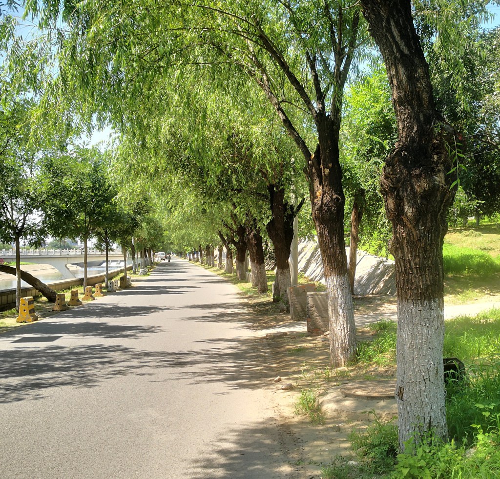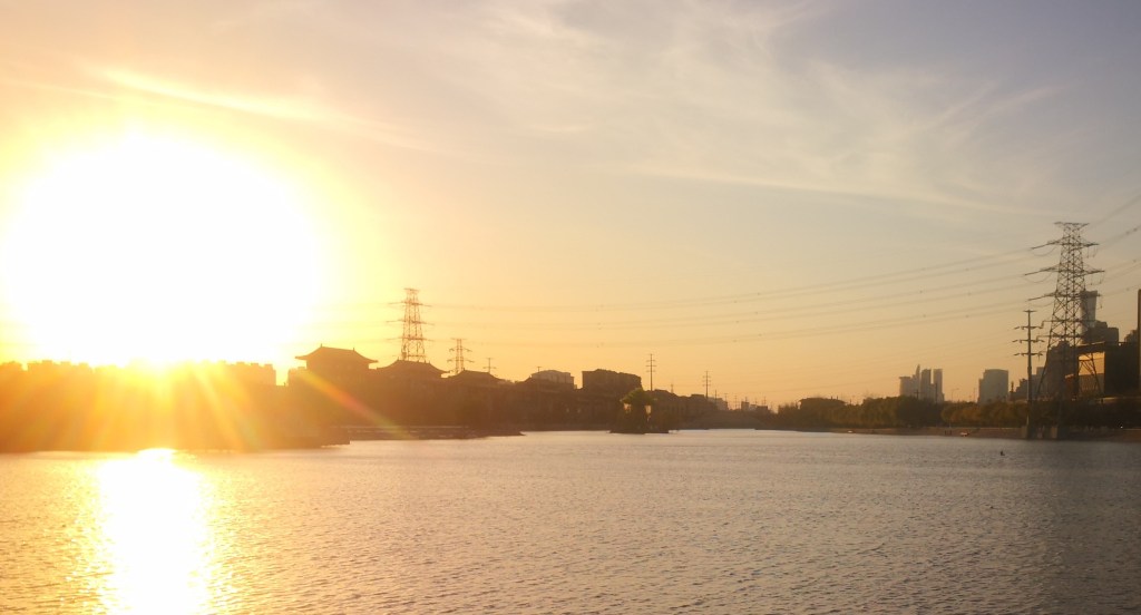 En aval du pont, nous entrons dans le district de Tongzhou (通州区). Puis, en longeant à vélo sur 5 km la rive nord du canal Tonghui, nous parvenons à la jonction du canal Tonghui avec la rivière Wenyuhe (温榆河) venant du nord, et avec la section nord du Grand Canal (北运河) coulant vers le sud-est jusqu’à Tianjin.