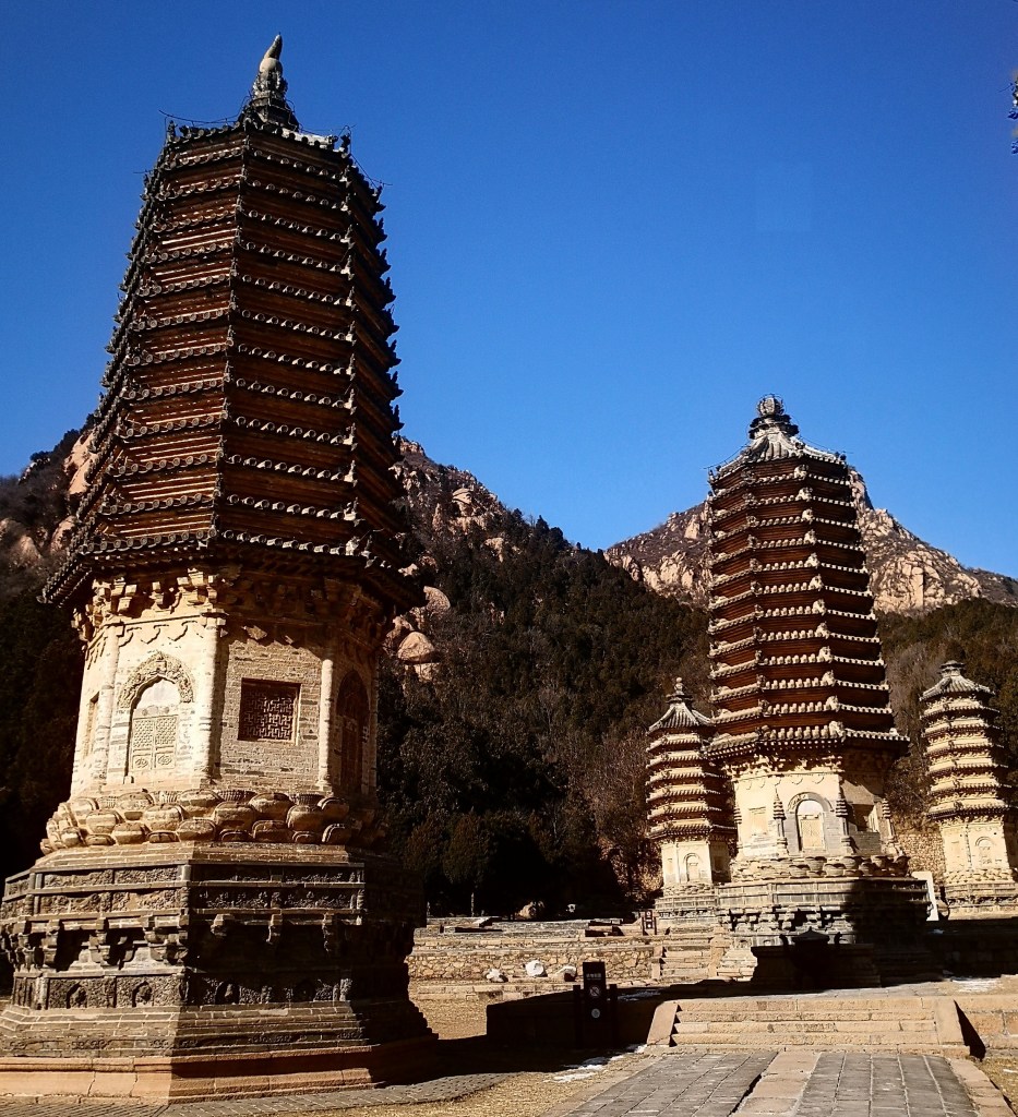 - Les stupas des dynasties Liao et Jin, en briques, à base généralement octogonale, parfois carrée, avec des étages bien marqués et dont le nombre relève de la symbolique numérique indienne. Ce style était en fait présent en Chine avant les dynastie Liao et Jin, notamment à l’époque Tang, voire avant.