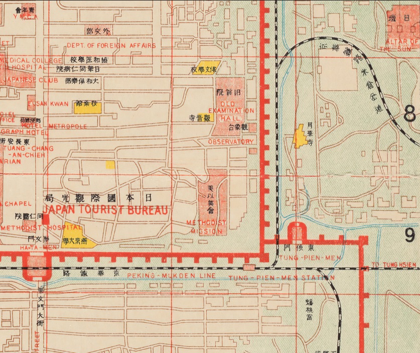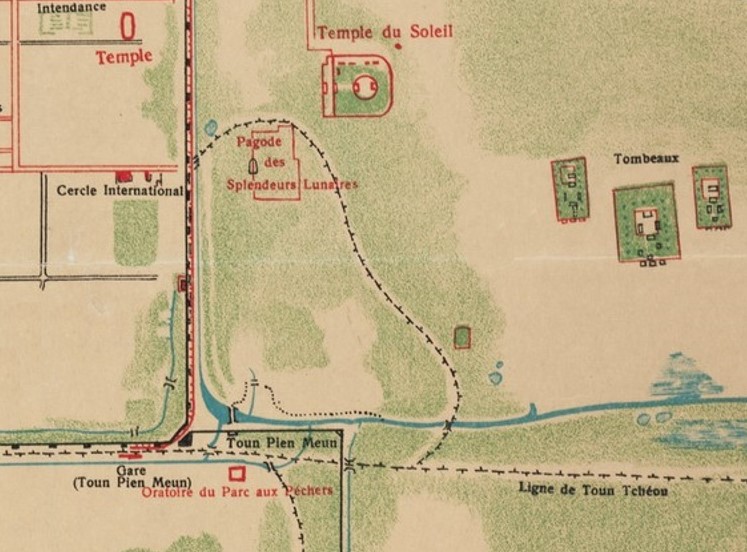 - Le temple des Splendeurs Lunaires (Yuè huá sì 月华寺) n’existe plus que comme un souvenir sur d’anciennes cartes. Sur celle éditée par le gouvernement de Pékin en 1947, son nom était écrit Yuè hé sì (月河寺), soit temple de la Rivière Lunaire : peut-être avait-il été renommé, ou il s’agissait d’un autre temple, ou l’enregistrement au cadastre était fautif (pour fuir l’impôt ou pour justifier une saisie), ou plus prosaïquement le recensement s’opéra à la va-vite.