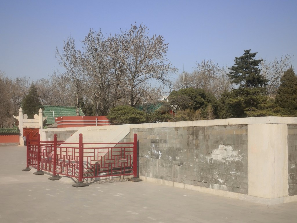 - Le palais des Pêches d’Immortalité (Pántáo gōng 蟠桃宮) était encore indiqué sur un carte de 1947, au sud de la porte Dongbianmen, dans la Ville Extérieure. La mémoire locale conserve l’écho de ses foires du Nouvel An. Mais son unique vestige visible sur le terrain consiste en une stèle votive datée de 1662 qui était initialement à l’entrée du temple et qui est désormais placée au milieu d’un jardin anonyme en bordure du 2e périphérique.