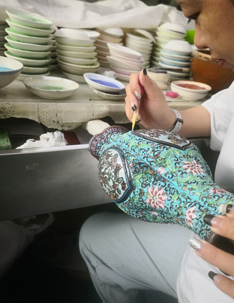Depuis 1956, la production pékinoise s’est concentrée à la fabrique des émaux de Pékin (北京珐琅厂) à quelques encablures au sud du temple du Ciel. L’usine a ouvert sur son site un musée de l’art du jingtailan de Chine (北京景泰蓝艺术博物馆) dont les salles exposent surtout des productions des années 1970-80 faites sur la base de modèles conçus du temps de la République de Chine. Les ateliers sont accessibles au public tous les jours, on y voit le travail qui se fait essentiellement à la main. D’ailleurs, les boutiques permettent de comparer les productions automatisées des productions manuelles.